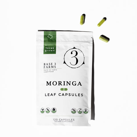 Base 3 Farms moringa offers incredible nutrients that your body needs in an easy-to-use, locally grown, all-natural powder. Our organic farm in Texas grows 100% of our high quality moringa and take pride in sharing the fruits of our labor with everyone.